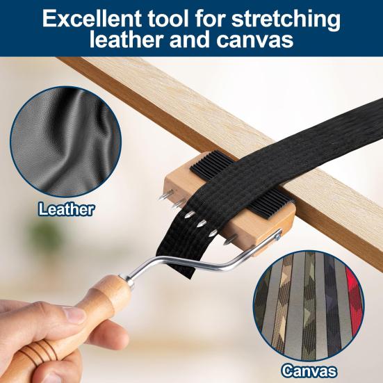Svanhals Vävsträckare Klädselverktyg med 6 Metallspikar Trähandtag Vävsträckningsverktyg för Läder Canvas svart