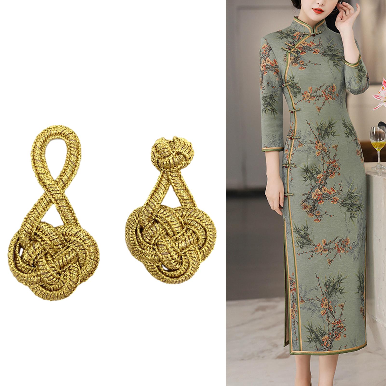 Sluiting Naaiknoop Chinese Knoop Kikker Schijf Gesp Knoppen voor Tang Pak Dans Nationale Kleding Cheongsam Mantel Ornament goud