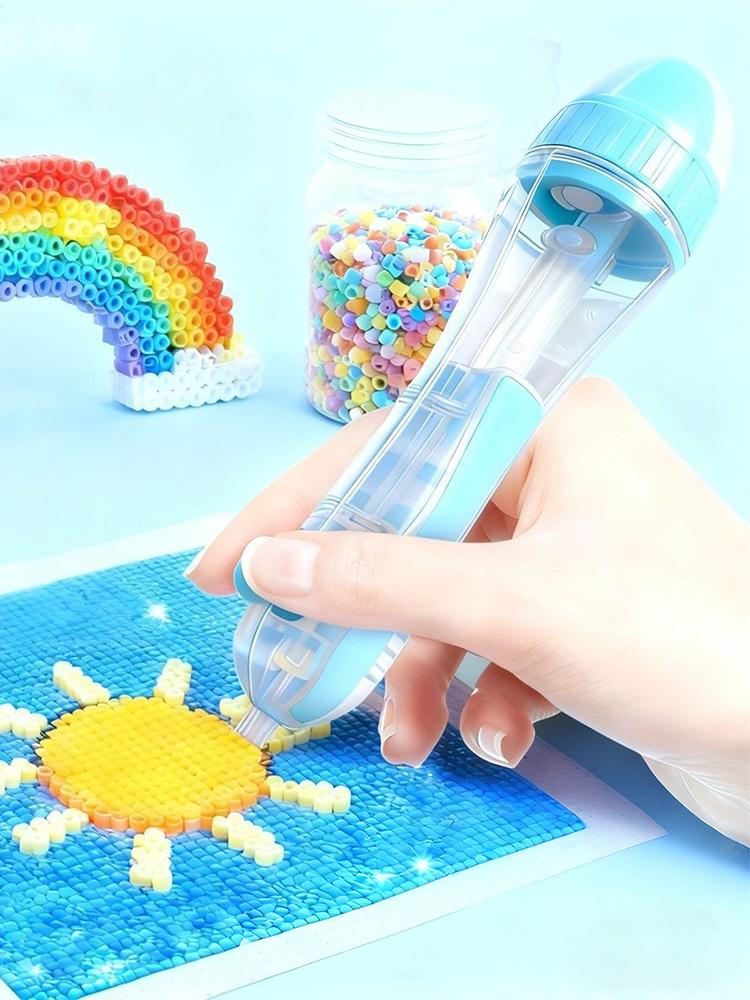 Perlepenn Automatisk Trykk Håndverksmaskin Ergonomisk Grep Pennedispenser for Perler for Barn Julekunst Armbånd Jenter Strass Blå
