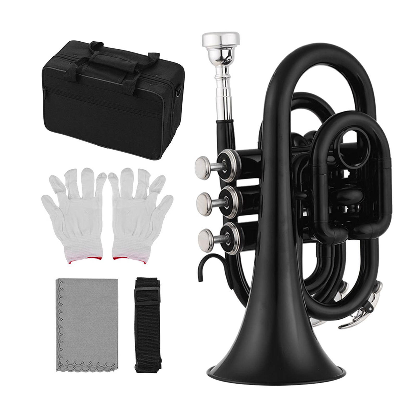 ammoon Mini Pocket Trumpet Bb Flat Brass Wind Instrument with Mouthpiece Gloves Cleaning Cloth Carrying Case