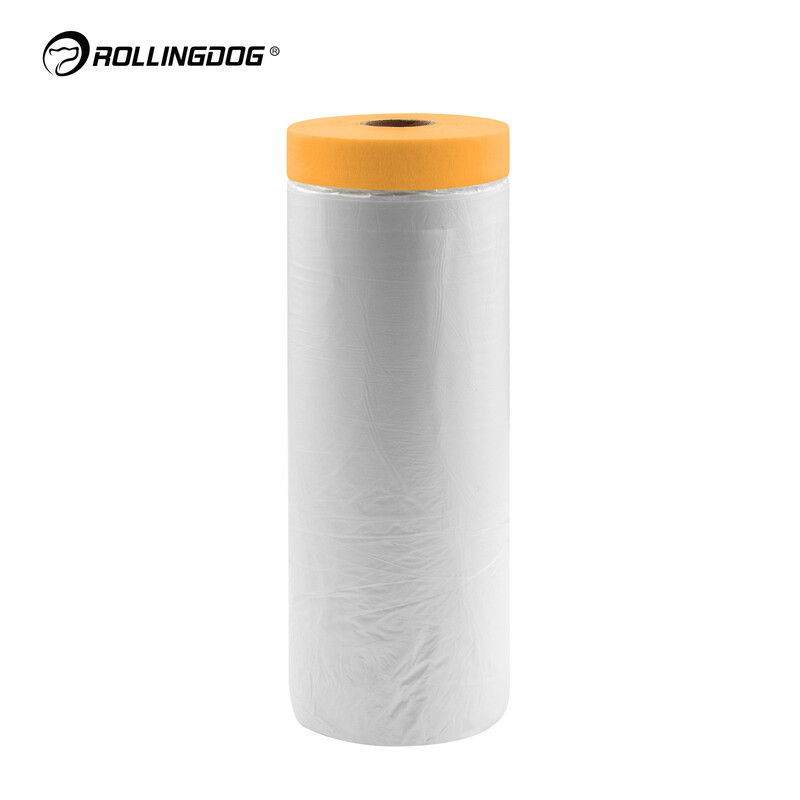 ROLLINGDOG Film de masquage en washi pré-adhésif 280 cm x 15 m, film de protection professionnel avec ruban adhésif, pour murs, meubles et sols, protection contre la poussière, peinture, rénovation, bricolage, application facile, retrait propre