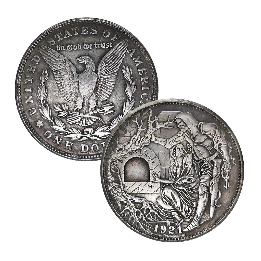 1921 Holy Grail wandering coin, knight drawing sword, vintage coin, antique silver plated copper coin, antique, collectible, playable coin, gift silve