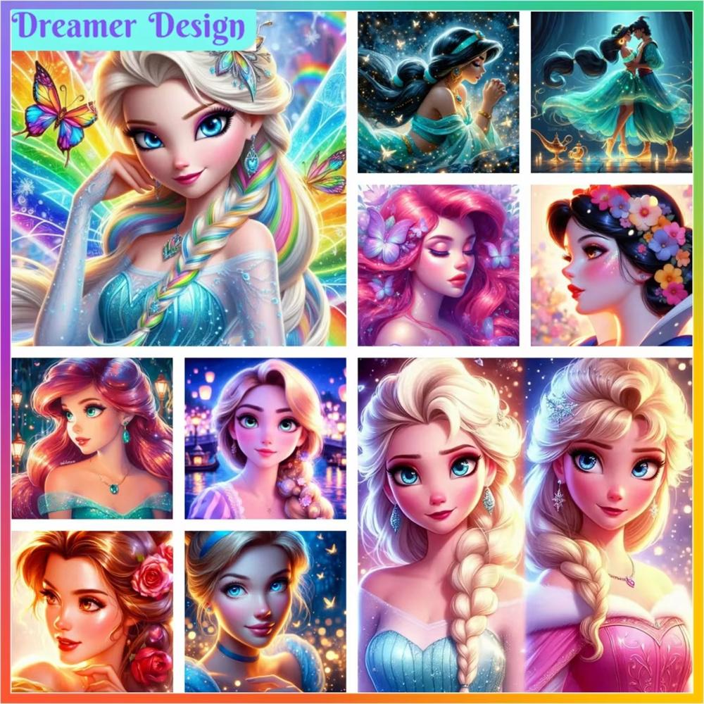 Collection Princesses Disney Peinture Diamant 5D Pleine de Diamants DIY Peinture Diamant Faite à la Main Dessin Animé Animation Kit de Peinture Décora