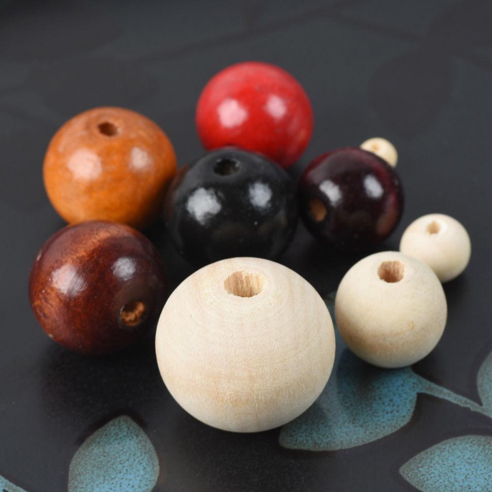 Perles Rondes en Bois Naturel Coloré Plaqué 6mm 8mm 10mm 12mm 14mm 16mm 18mm 20mm pour Bricolage Artisanat Bijoux Fabrication de Bracelets Accessoires