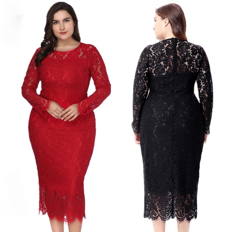 Modna sukienka w dużym rozmiarze, o pełnej długości, z delikatną koronką i długimi rękawami cm biały