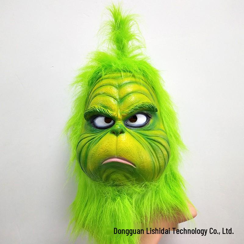Ensemble Gants Vert Grinch Poilus & Masque de Noël pour Jeu de Rôle Père Noël Goofy