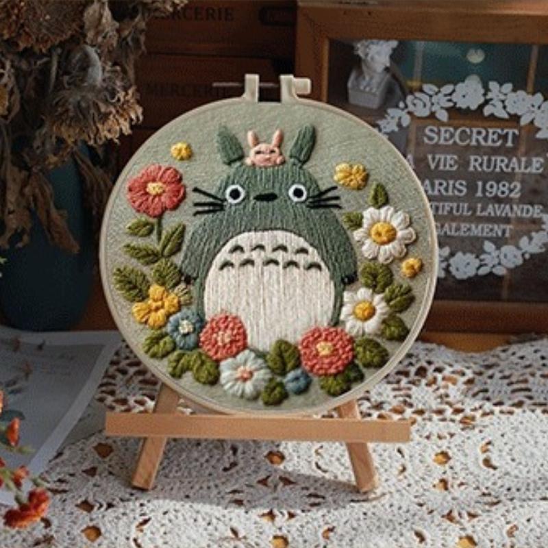 1 kit de bricolage en tissu avec broderie motif floral Totoro et outils