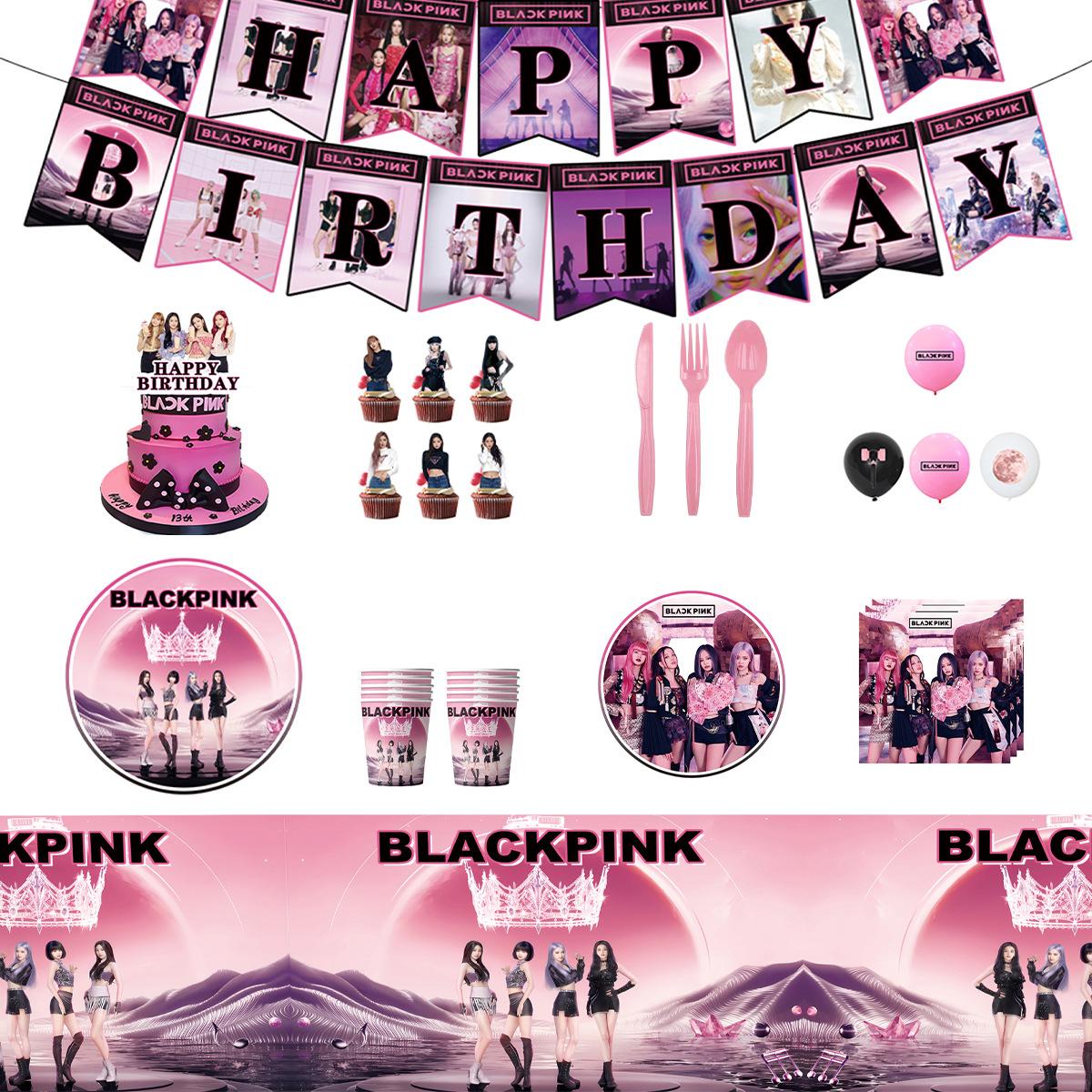 Blackpink Festartikler Engangsbestikk Papptallerkener Pappkopper Servietter Jenters Bursdagsfest Dekorasjon