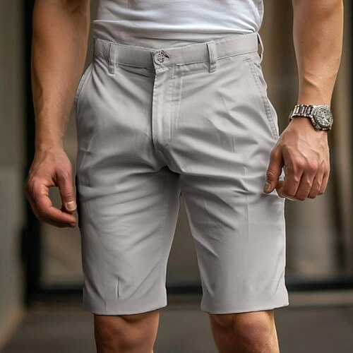 Per uomo Pantaloncini Pantaloncini chino Bermuda Tasche Liscio Comfort Traspirante Lunghezza del ginocchio Esterno Giornaliero Per uscire Di tendenza Streetwear Nero Bianco Media elasticità