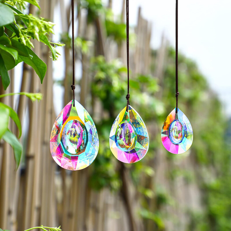 JU7CER Lot de 3 Prismes en Verre Cristal Œil de Dragon Pipa Irisé - Suspension Attrape-Lumière Arc-en-Ciel pour Fenêtre, Indispensable pour Mariages et Noël