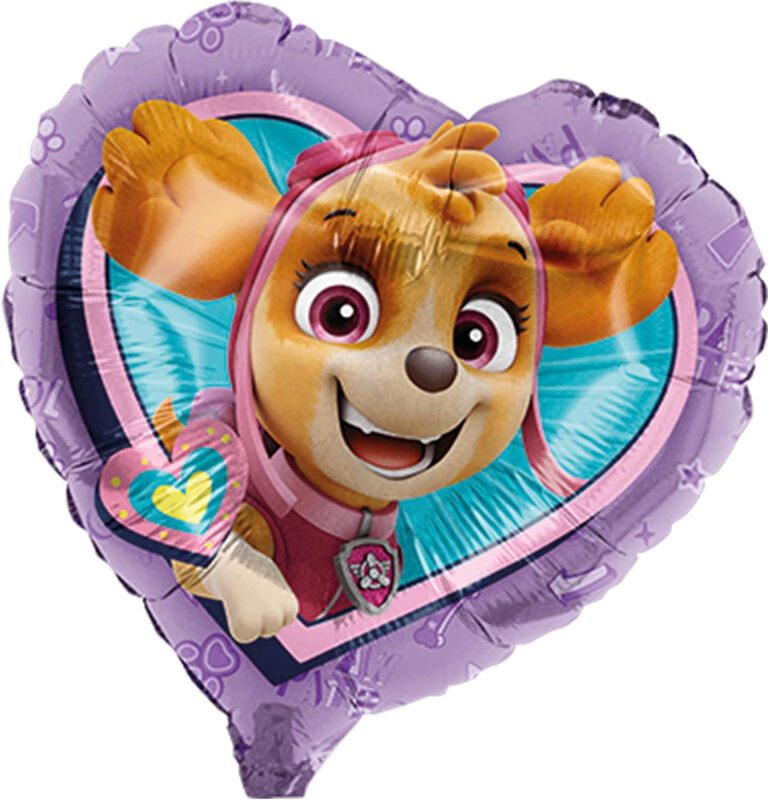 Paw Patrol Skye, Herz Folienballon, lila, Ø45cm, Heliumballon Helfer auf 4 Pfoten, Kindergeburtstag Mädchen