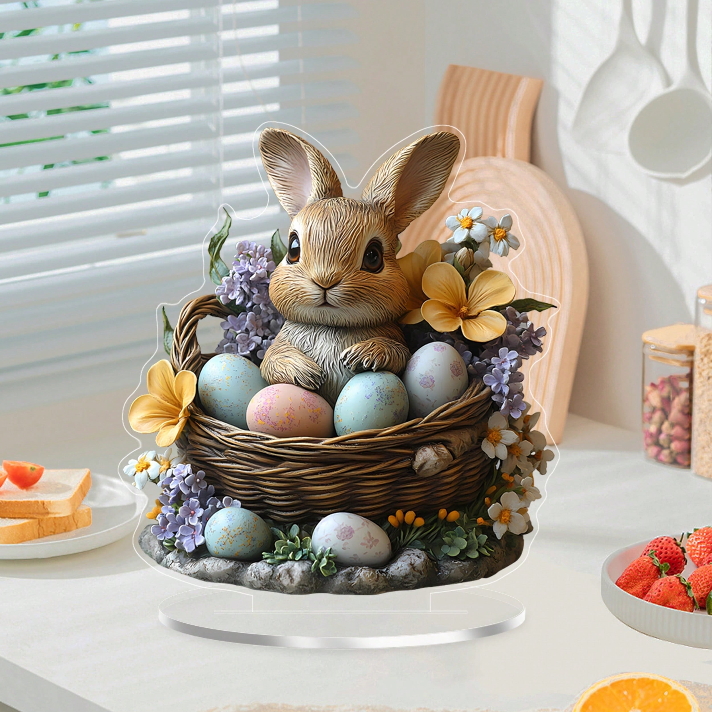 Rabbit and Easter egg tabletop decora made of acrylic is suitable for Easter and daily home decora. Gifts for family and friends