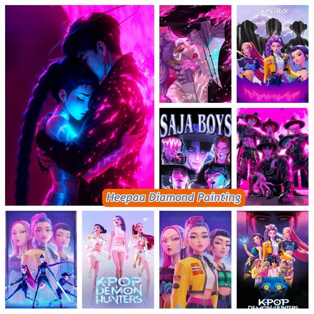 Kpop Demon-Hunters Movie 5d Diamond Art Painting Fancy Saja Demon Boys Anime Rumi and Jinu Diy Cross Stitch Photo Mosaic Decor