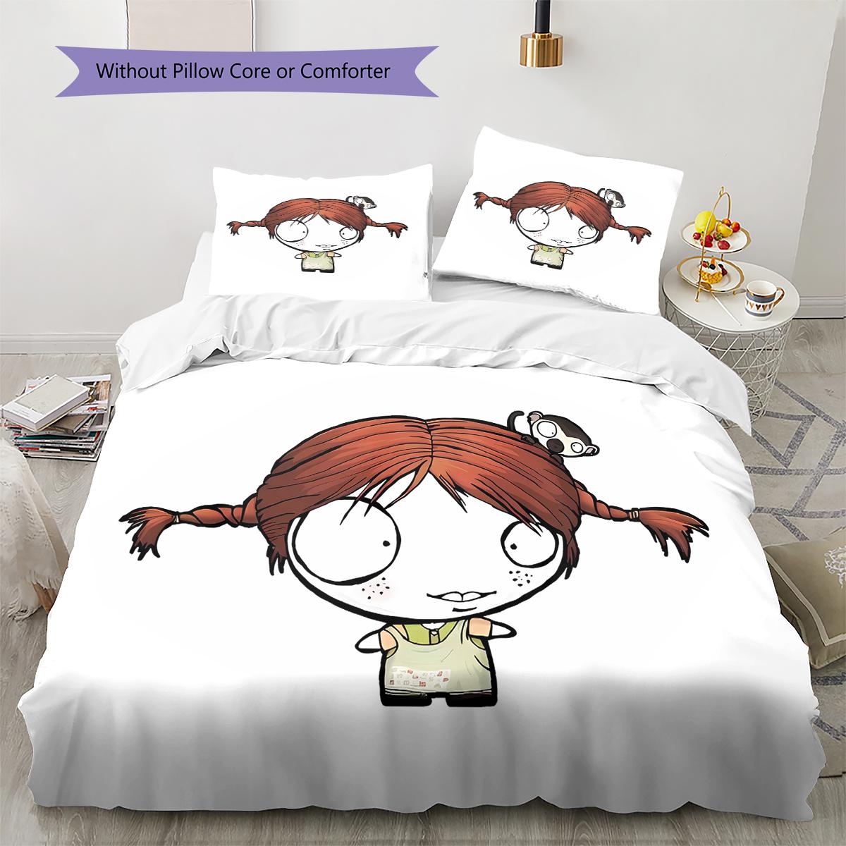 Pippi Långstrump Mönster Sängkläder, Täcke Set Påslakan Kuddfodral Hem Födelsedagspresent (1 * påslakan + 2 * örngott, utan kärna) 220cm
