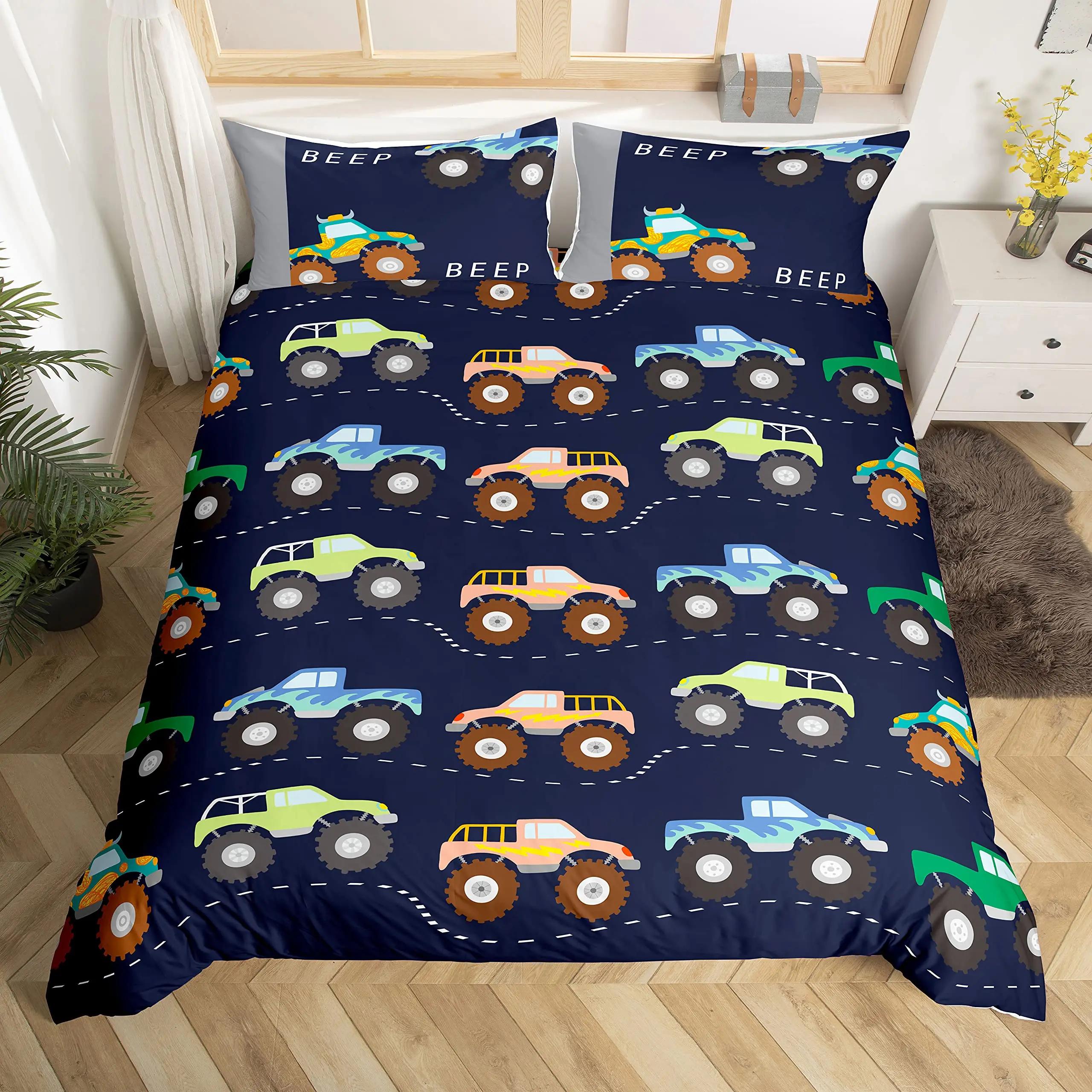 Truck Bedding Jongen Auto's Dekbedovertrek Set voor Kinderen Meisjes Tieners Freestyle Truck Decor Dekbedovertrek Blauw Quiltovertrek Beddengoed Decor
