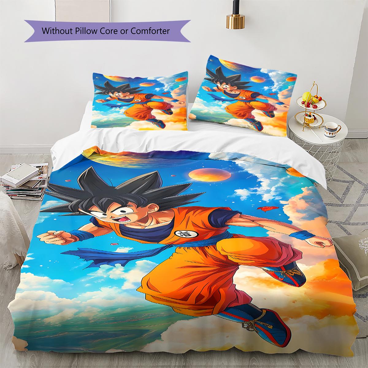 Son Goku Muster Bettwäsche, Steppbett Set Bettbezug Kissenbezug Zuhause Geburtstagsgeschenk (1 Bettbezug + 2 Kissenbezüge, ohne Füllung) 200cm