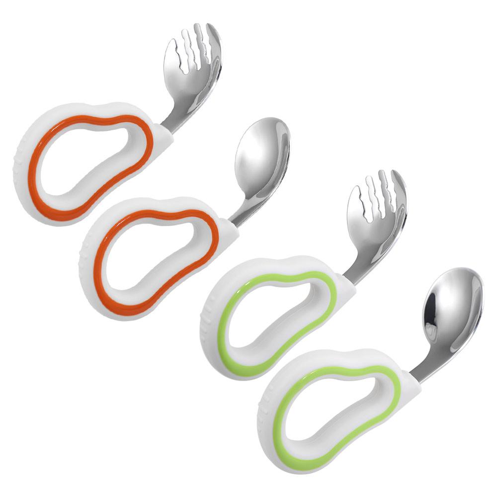Couverts Auto-Alimentation pour Bébé Acier Inoxydable 316 Vaisselle Enfant Apprendre à Manger orange