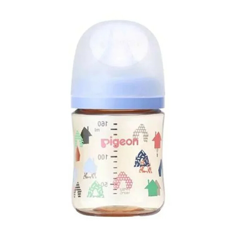 Pigeon 3e generatie wijdhalsflessen met borstsensatie, valbestendig, blauwe huisjes, kunststof, 160 ml
