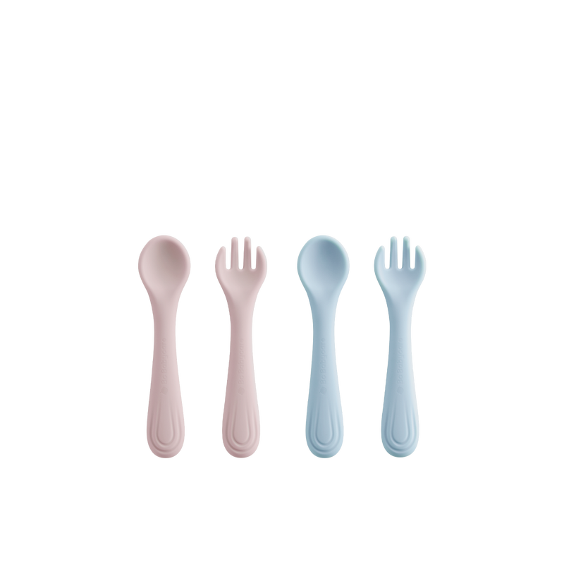 Bc Babycare Silicone Fork and Spoon 2 Pieces Pink + Blue