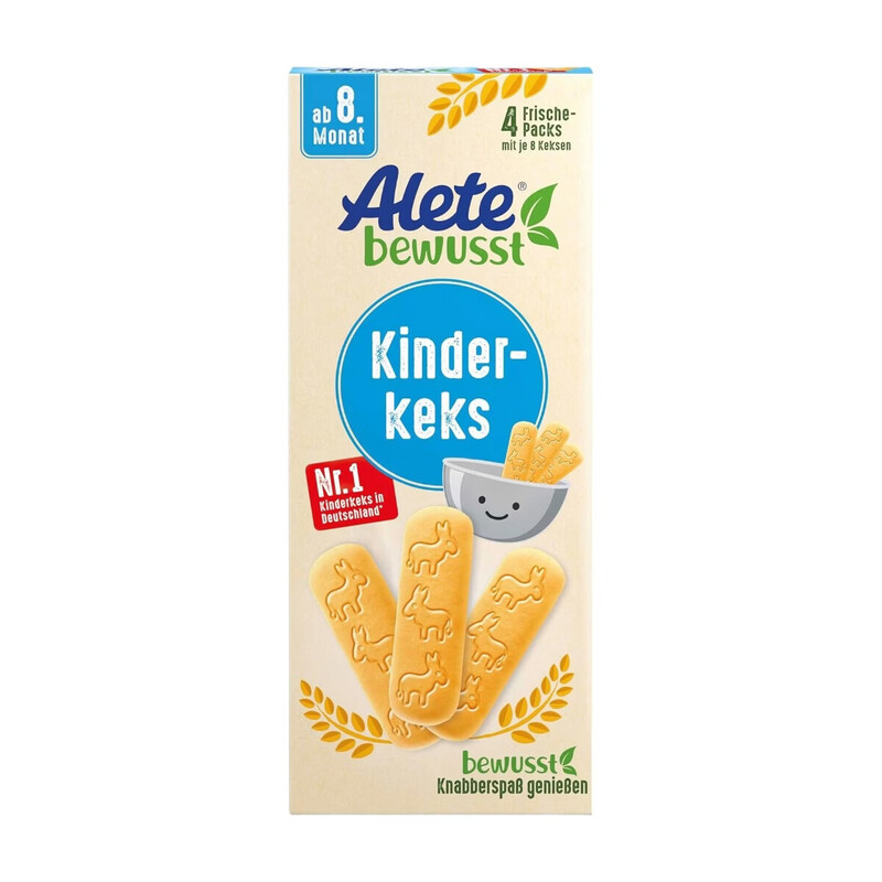 ALETE BEWUSST Kinderkeks - Kinderkeks ab 8 Monaten, Zuckerreduziert, Ohne Palmöl, Praktischer Snack, 1 x 180 g