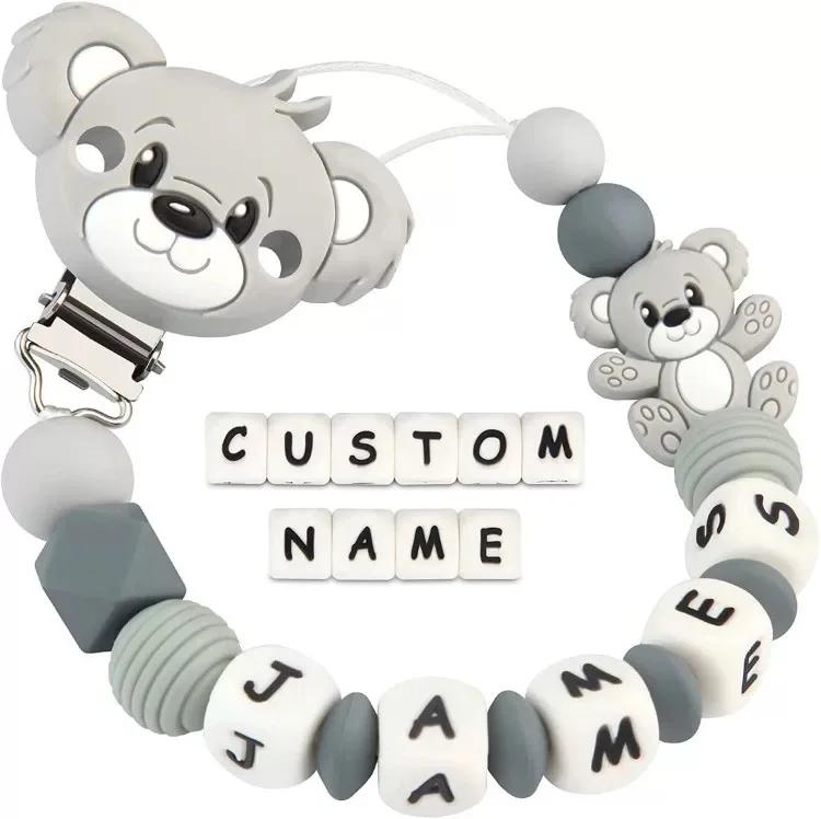 Baby Personalisert Silikon Navn Tegneseriebjørn Nyfødt Tilbehør Smokkesnor Biteleke Tygg Gave Smokk Holder Kjede