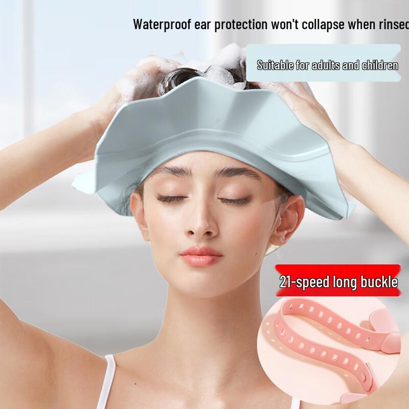 Douchekap voor Volwassenen Vizier Verstelbaar Badhoed Shampoo Vizier Kap Zacht Haarwas Vizier voor Hoofd Oor Oog Bescherming blauw