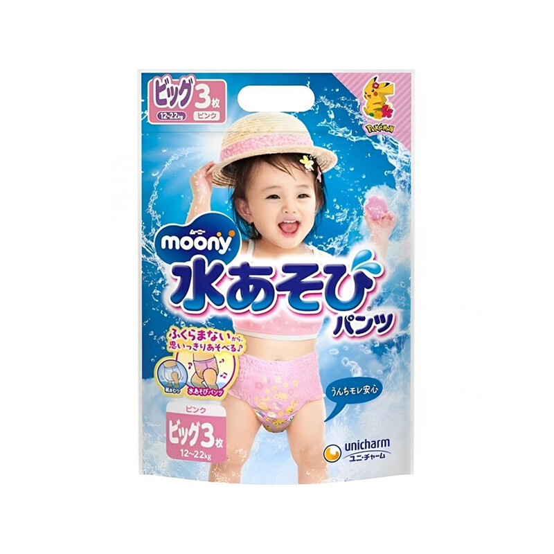 Unicharm Moony Meisjes Zwemtrainingsbroekjes, 3-pack (Maat XL)