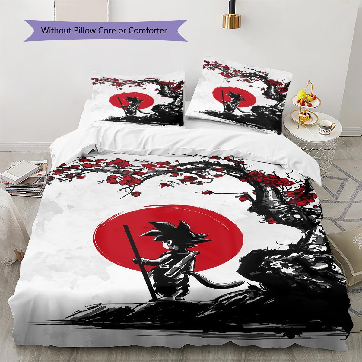 Jolie Literie Motif Dessin Animé Son Goku, Ensemble Couette Housse de Couette Taie d'Oreiller Cadeau d'Anniversaire pour la Maison (1 housse de couett