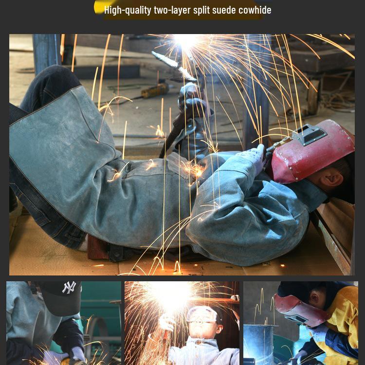 Svetsförkläde i koskinn: Brandsäker, Värmetålig, Gnistskyddad, Delad benkonstruktion för svetsare.