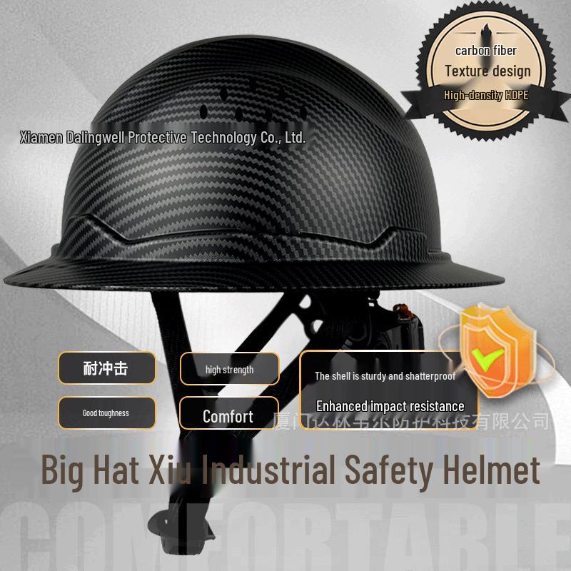 CE Carbon Fiber Wide Brim Safety Helmet with Sun Protection and Anti-Smash Features