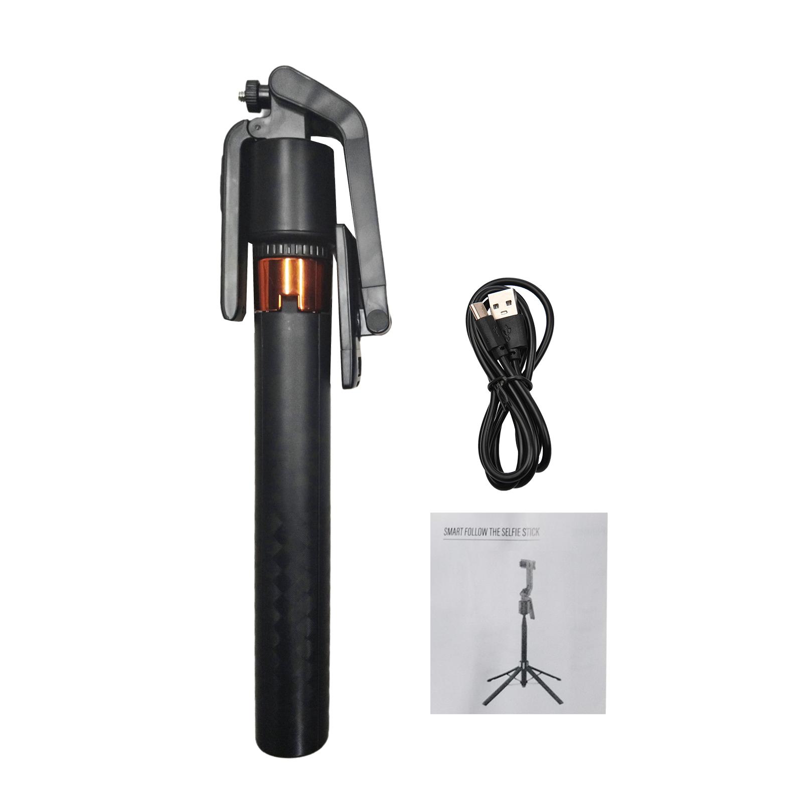 Automatisk ansiktssporing Stativ Selfiestang 180cm 71in Utvidbar 360 grader Roterende Telefonstativ Quadrapod Gest Svart