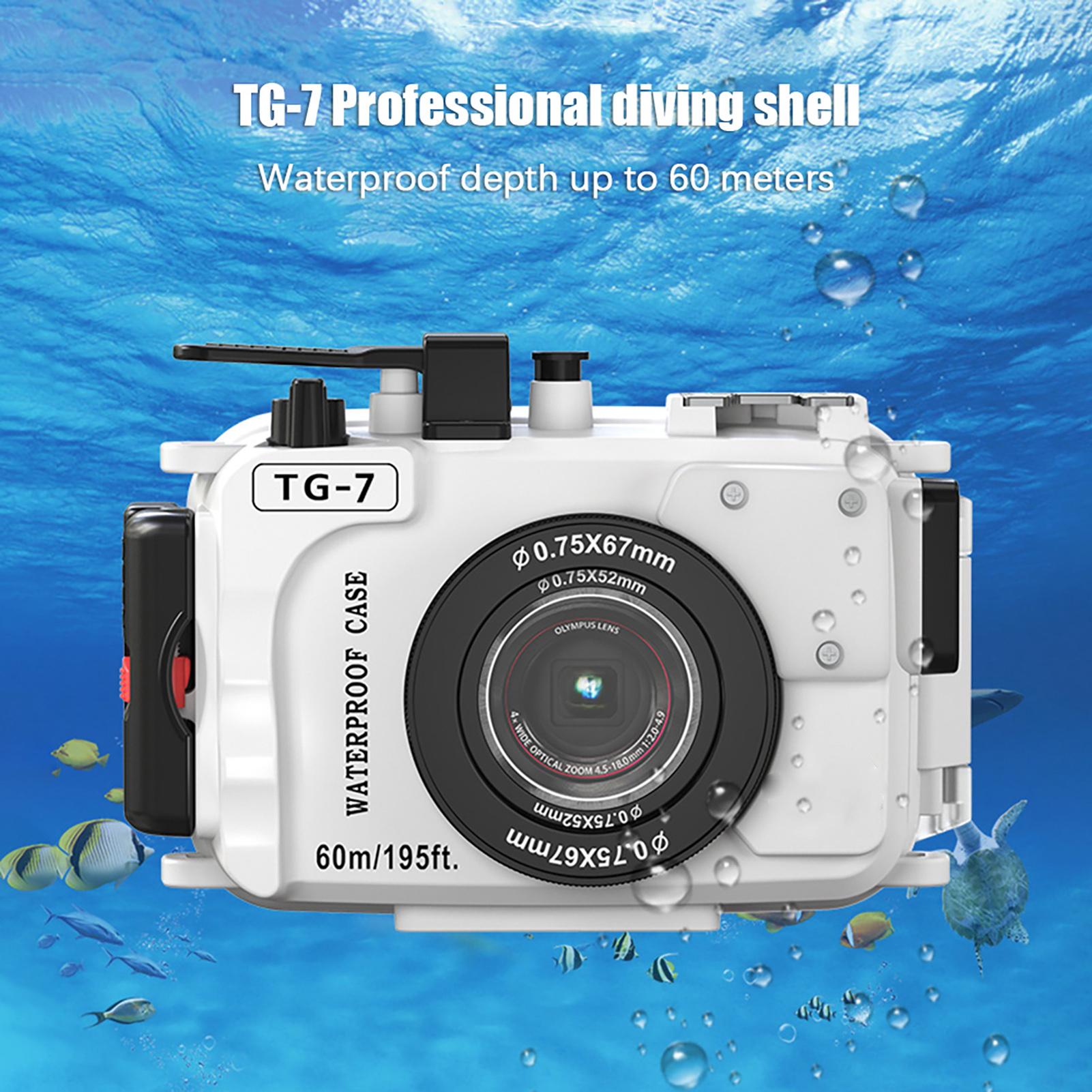 TG7 vanntett kamerahus for actionkamera, undervann 60m 195ft dykkebeskyttelsesetui med 52mm Svart