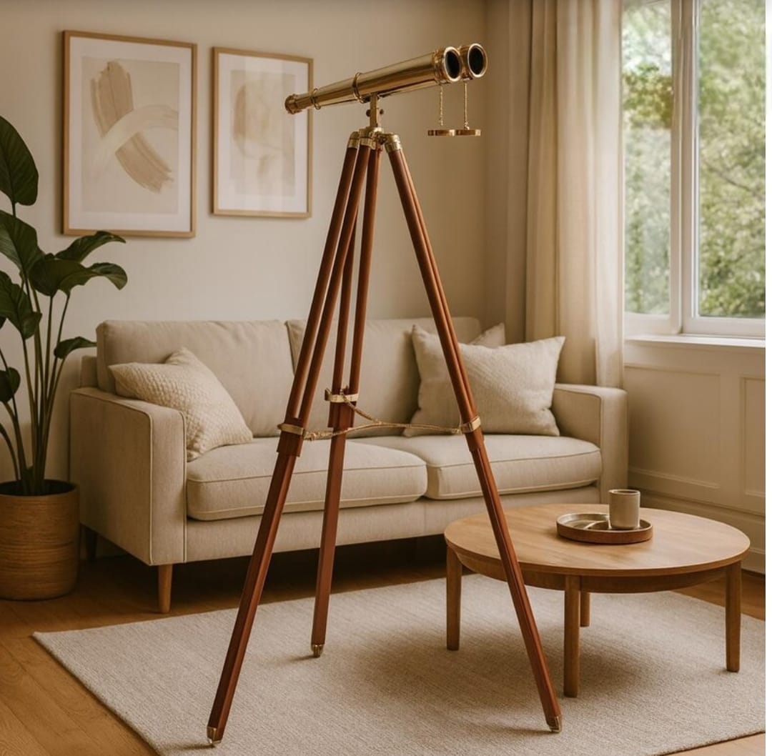 Egendegravert Messing Kikkert Nautisk Teleskop på Trestativ Jul Valentinsdag Bursdag Høytid Hjemmedekor Personlig Gave
