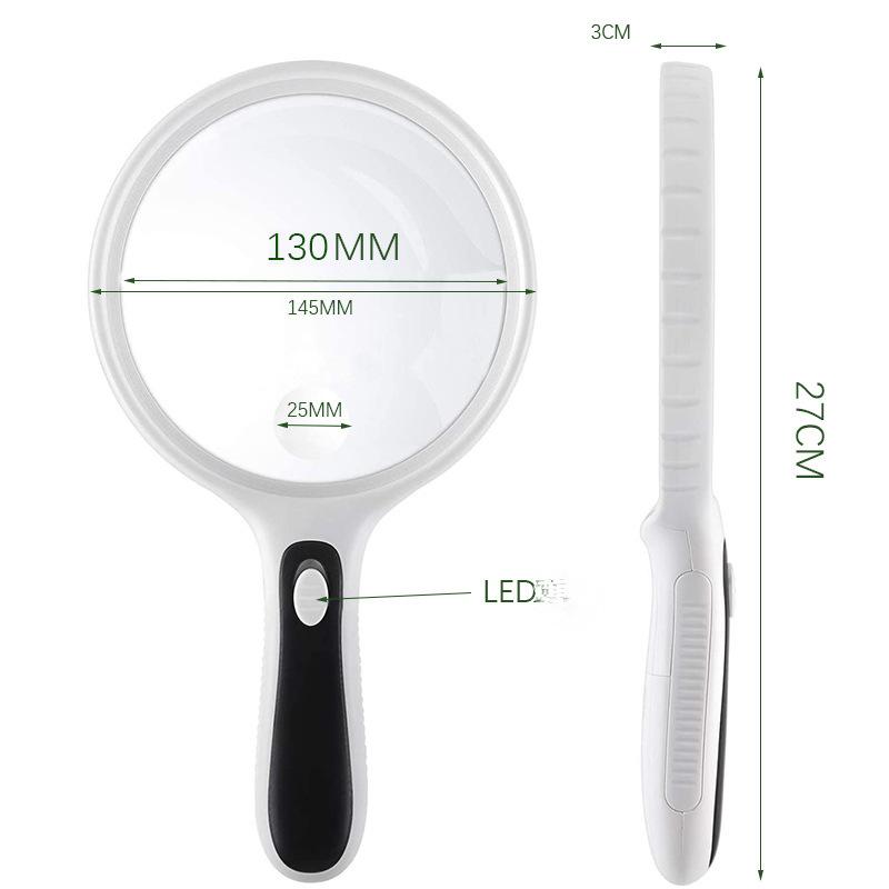 Loupe 145 mm Grand Diamètre Lecture Personnes Âgées 4 LED Loupe Manuelle 10X