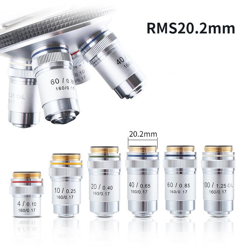 4X 10X 20X 40X 60X 100X 195 Akromatisk Mikroskopobjektiv