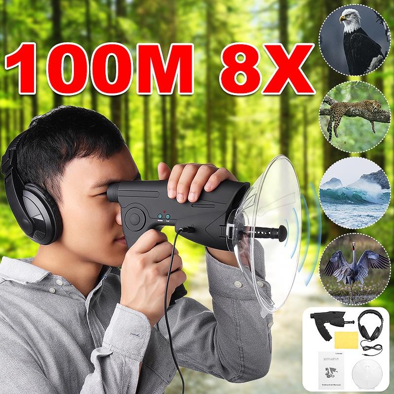 9 V 100M 8X Fuglekikkert Fuglelyttingsteleskop Monokulært Fokuseringsteleskop Parabolisk Tallerken Retningsstyrt Utendørs Mikrofon
