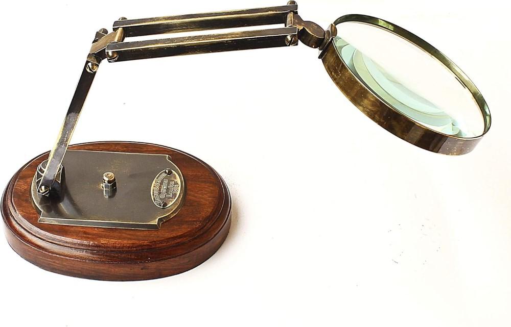 5X Loupe de Bureau en Laiton avec Support Réglable et Base en Bois Vintage aéro