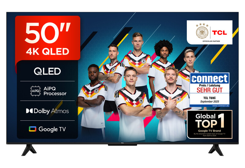 TCL 98Q6C QD-Mini LED Fernseher, 98 Zoll, 4K HDR Premium, Dolby Vision IQ & Atmos, Onkyo 2.1 Sound, Google TV, Smart TV, Game Master, 144 Hz, FreeSync Premium Pro, HDMI 2.1, AirPlay 2, Alexa & Google Assistant