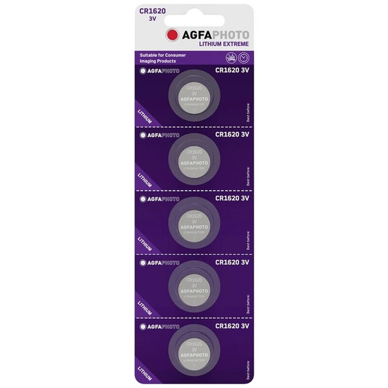 AGFAPHOTO Lithium-Batterie, Knopfzelle, CR1620, 3V Extreme, Retail-Blister (5er-Pack)