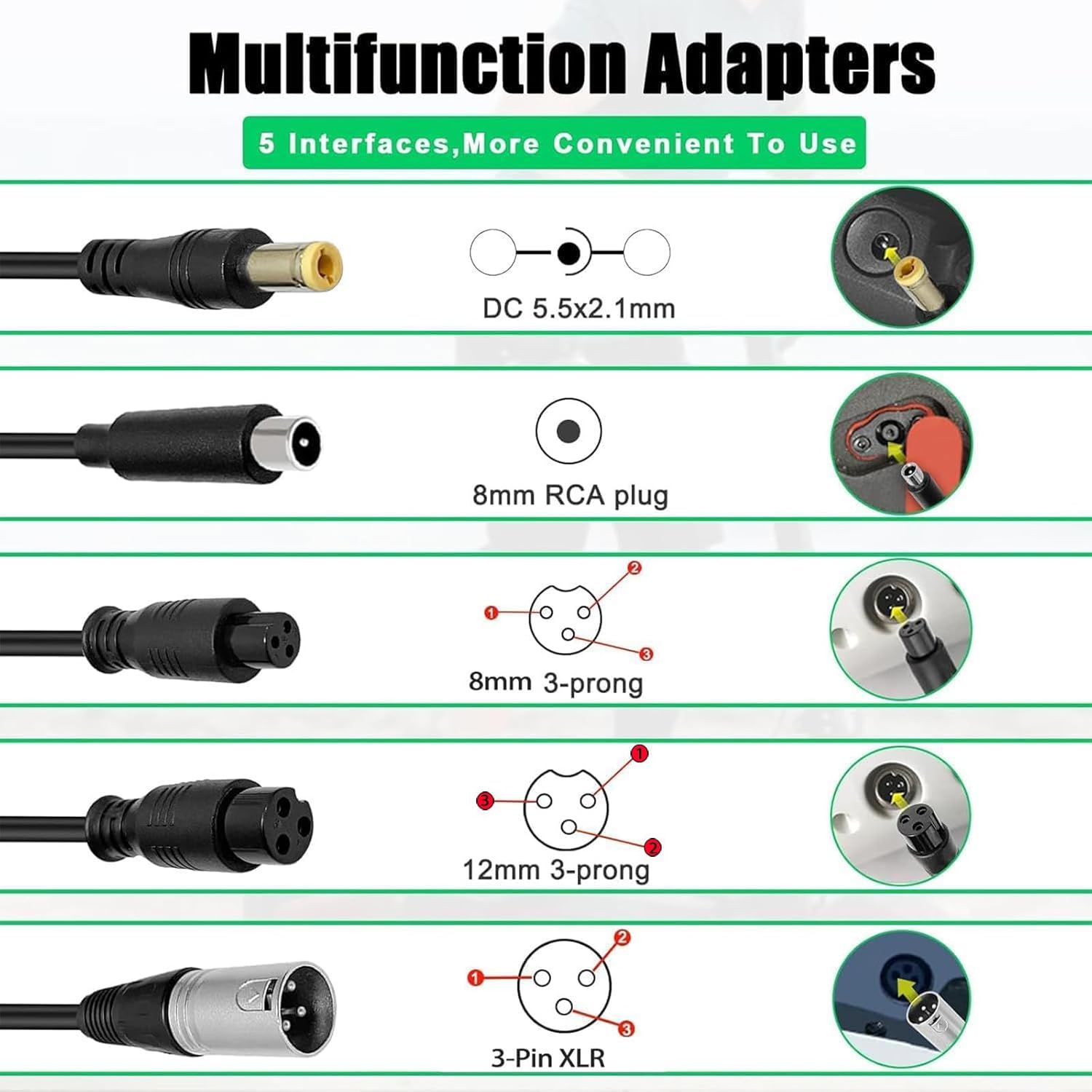 (5 plugger) 29,4V 2A Hurtiglader for batteri, universell for 24V 25,2V 25,9V litiumbatteri, erstatningslader for elektrisk sparkesykkel - 5-i-1-plugge
