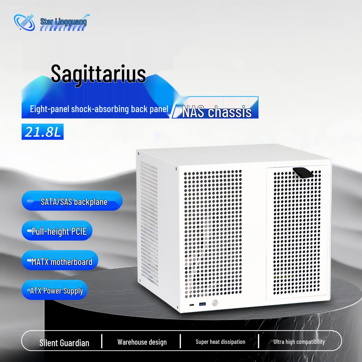 Sagittarius 8-facks NAS-chassi: mATX, SATA-bakplan, ATX-nätaggregat, PCIe i fullhöjd
