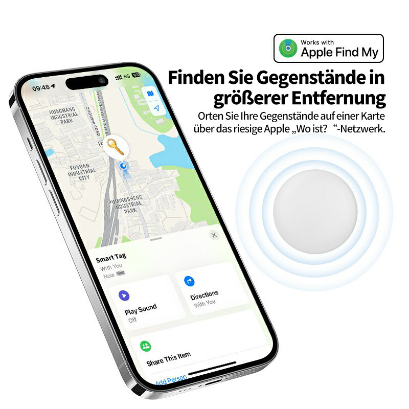 Rexsun RSH-iTag12 Anti-Verlust-Tracker für Apple „Wo ist?“ – IP53 wasserresistenter Bluetooth-Tracker mit austauschbarer CR2032-Batterie, lautem 75-dB-Signalton & Zurückgelassen-Benachrichtigungen