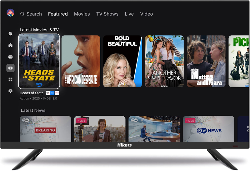 Hikers 43 Zoll FHD Smart-TV, Whale OS, DVB-T2/S2/C-Tuner, 1080p-Auflösung, Speicher für über 1000 Sender, Dualband-WLAN, Bluetooth 5.1, integrierte Apps: Prime Video, Netflix, Disney+