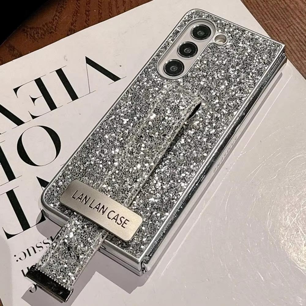Luxury Flash Diamond Sparkling Phone Case for Samsung Galaxy Z Fold 7 6 5 4 Electroplated Bracelet Shockproof Protect Back Cover