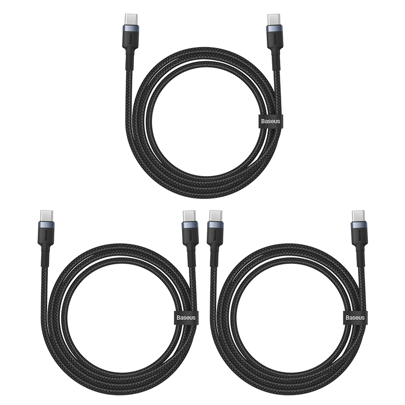Baseus Cafule Fast Charging Data Cable USB-C to USB-C 60W 2m Grey Black (Pack of 3)