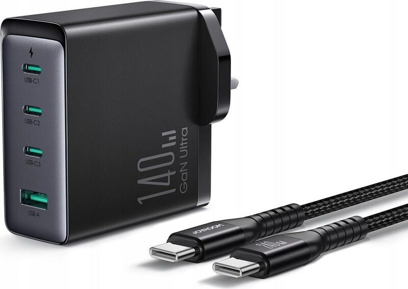 Joyroom JR-TCG05UK UK GaN-Ladegerät 140W 3x USB-C USB-A + 240W 1,2m USB-C / USB-C-Kabel