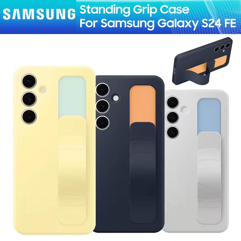 Original Samsung S24 FE Stående Greppfodral För Samsung Galaxy S24 FE Greppfodral Lyxigt Silikonarmband Stötsäkert Elastiskt Band Hårt Baksidesskydd b