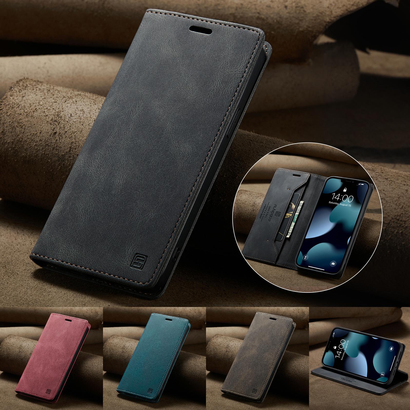 AutSpace-A01 For Samsung Galaxy S25 S24 S23 S22 Ultra S20 ,Shockproof Magnetic Flip PU Leather Wallet Case Card Slot Stand Cover black