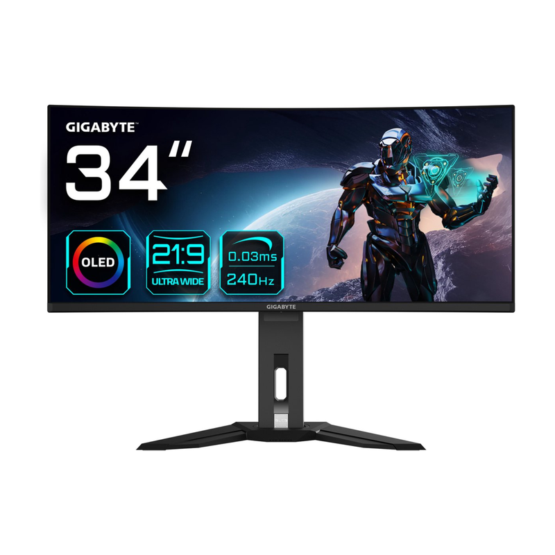 Gigabyte MO34WQC2 34" OLED WQHD curved gamingmonitor - 3440 x 1440, 240 Hz, 0,03 ms, KVM, 250 cd/m², FreeSync Premium Pro, DisplayHDR True Black 400, HDMI 2.1, DisplayPort 1.4