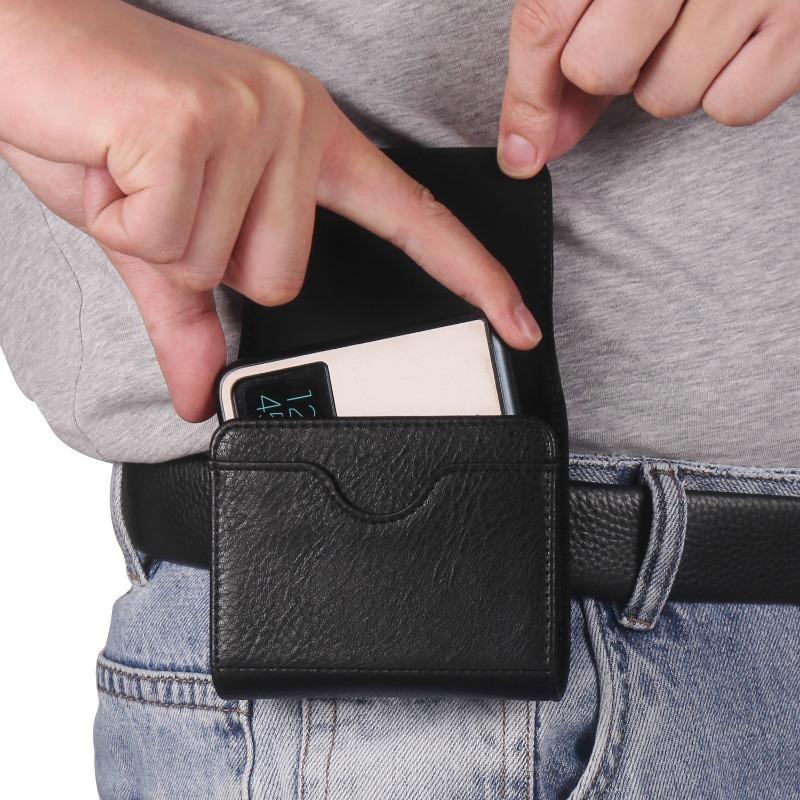 för Samsung Z Flip7 Moto Razr 50 Ultra HUAWEI Pura X Midjeväska i Läder för Vikbara Telefoner Ficka för Vikbar Telefon med Kortfack brun